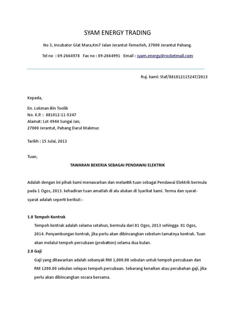 Contoh Surat Tawaran Kerja Dari Syarikat Letter 7saudara Com